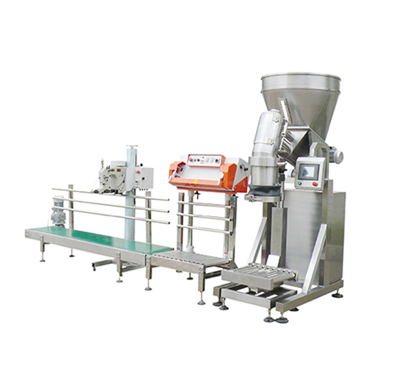 功能:該機與縫包機組配合可自動完成計量、夾袋、充填、封口、縫包、傳送等工作。